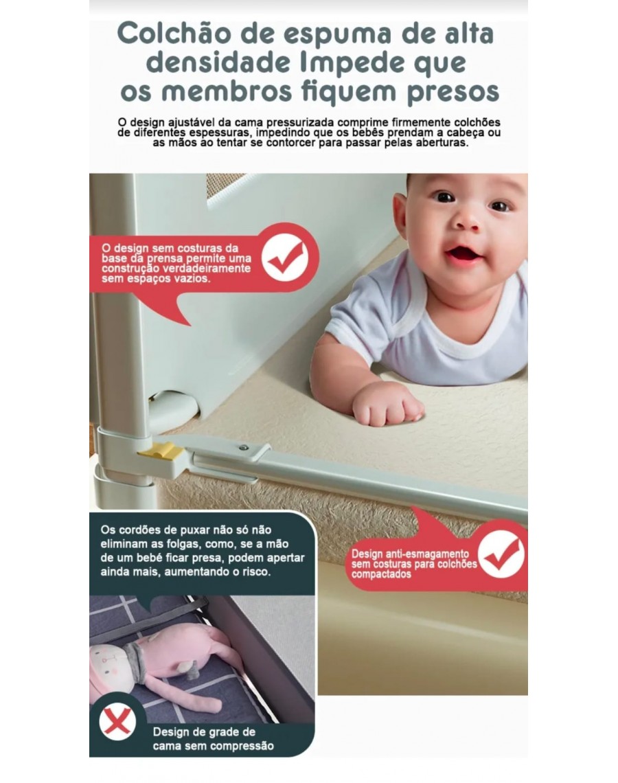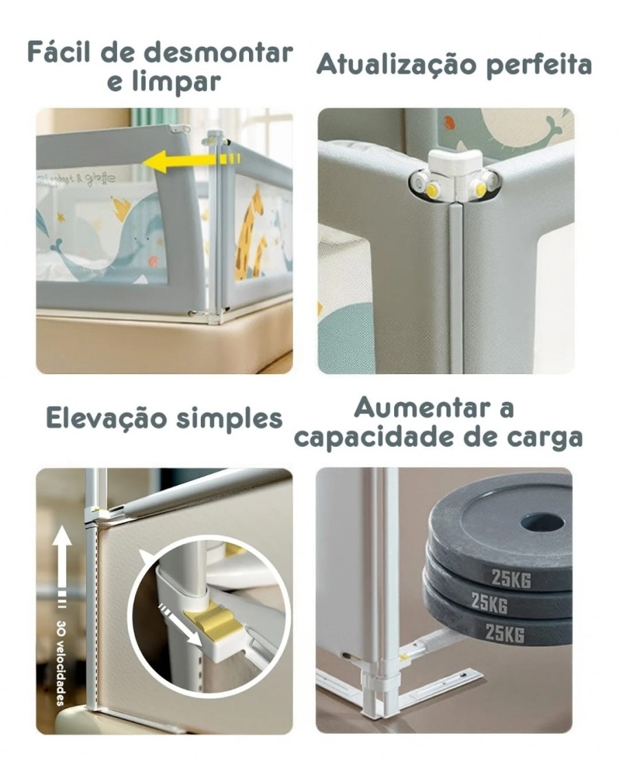 O processo de instalação é muito fácil, sem ferramentas complicadas, os pais podem concluir a montagem rapidamente. E a cerca pode adaptar-se de forma flexível a uma variedade de tipos de cama, seja uma cama de bebê, uma cama de casal comum ou outro tipo de cama, pode ser facilmente instalado e usado, muito melhorar a conveniência do uso, de modo que os pais não precisam se preocupar com o problema de adaptação do tipo de cama, facilmente criar um espaço seguro e protetor para o bebê.