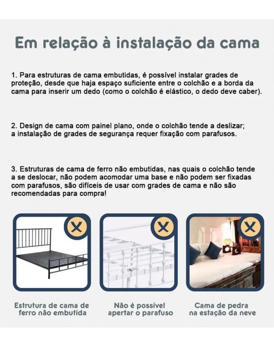 A instalação conveniente, adapta-se facilmente ao tipo diferente da cama.